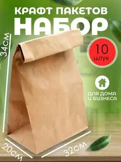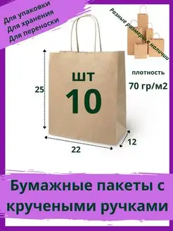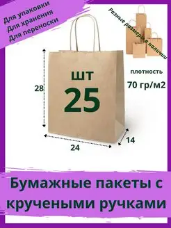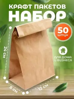 Бумажный пакет крафт без ручек 24*12*8см, 50 штук