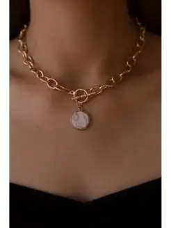 J&A Колье с кулоном Цепочка на шею с медальоном Цепь с замоч…