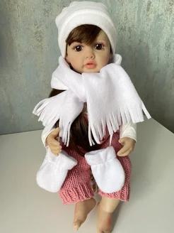 Одежда для куклы reborn 55-60 см шапка шарф и варежки