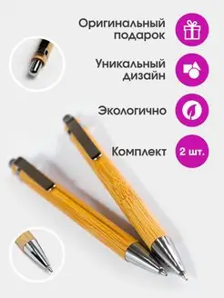 Ручка шариковая синяя из бамбука в подарок 0,5 мм 2 штуки