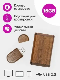 Деревянная флешка 16 гб USB 2.0 в подарочной коробке
