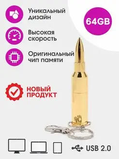 Патрон-флешка USB в подарок, пуля флешка 64 гб в чехле АК-47