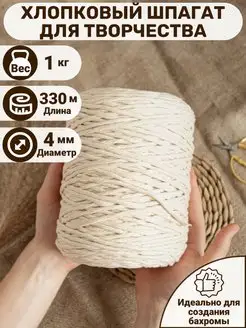 Шпагат хлопковый для макраме и шнур для вязания 4 мм