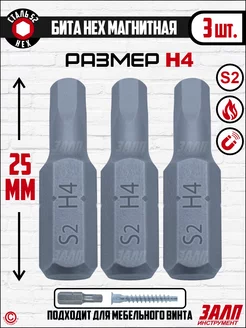 Биты HEX 25мм H4х25 мм, 3 штуки, магнитные