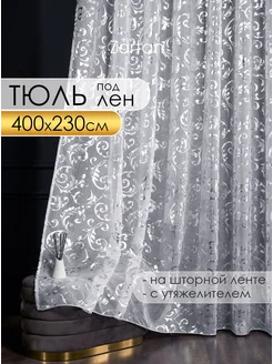 Тюль 400х230 готовый на ленте под лен с рисунком