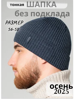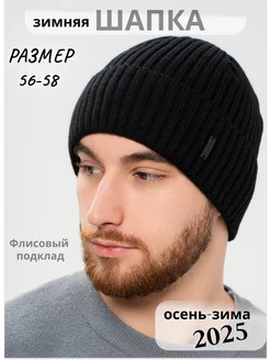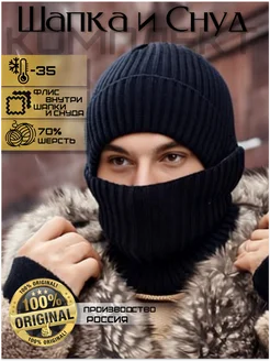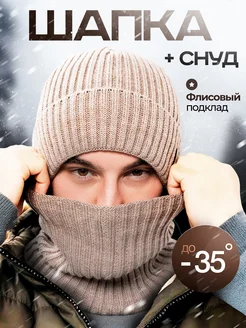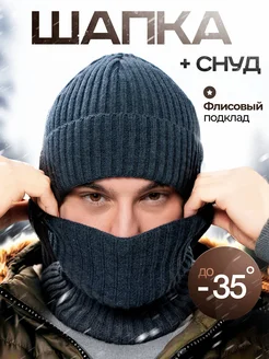 Шапка и снуд зимняя флис синяя с подворотом бини