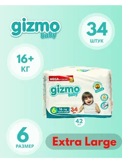 Подгузники для детей гизмо 6 размер 16+ кг 34 шт