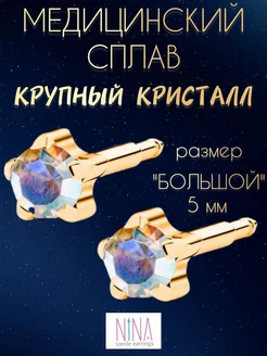 Серьги гвоздики цвет золотистый 5 мм медицинская сталь