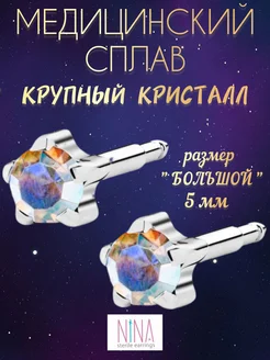 Серьги гвоздики пусеты серебристый 5 мм медицинская сталь