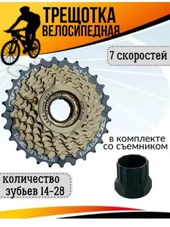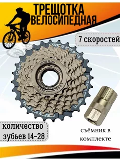 Трещотка велосипедная 7 скоростей в комплекте со съёмником