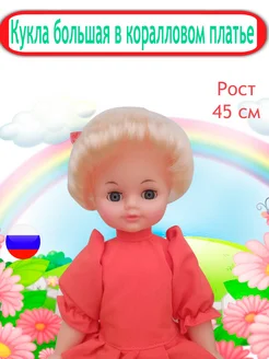 Кукла большая 45см в коралловом платье