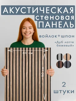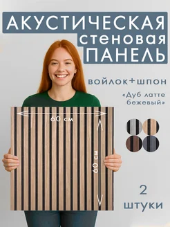 Акустическая панель 2шт. 60х60х0,8см черный войлок, шпон