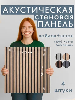 Акустическая панель 4шт. 60х60х0,8см черный войлок, шпон