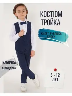 Праздничный костюм тройка для мальчика с жилетом школьный