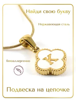Подвеска двухсторонняя перламутровый клевер с буквами