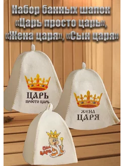 Набор шапок 3 шт банных просто царь и жена царя сын царя
