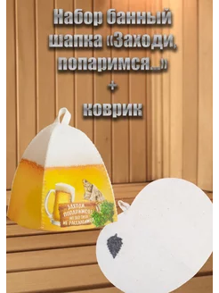 Подарочный набор для бани и сауны 2 предмета шапка коврик