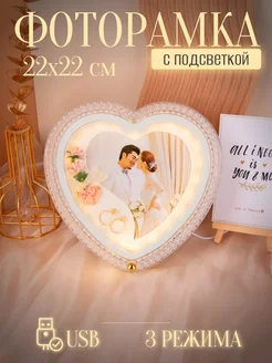 Фоторамка с подсветкой сердце, 22 х 22 см