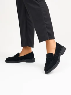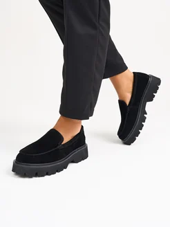 Замшевые лоферы на платформе черные осень