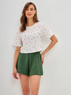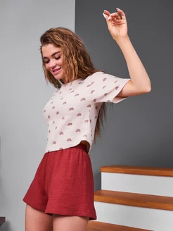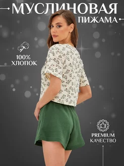 Пижама с шортами домашняя муслиновая