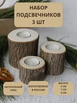 Деревянный подсвечник из спила клёна со свечей