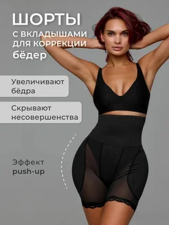 Трусы пуш-ап корректирующие с накладными бедрами и высокой т…