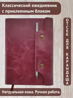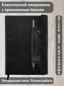 Ежедневник А5 из натуральной кожи с декоративной полоской