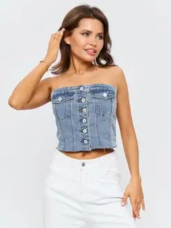 Топ корсет женский джинсовый кроп топ бра