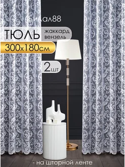 Тюль 300х180 жаккардовый готовый на ленте с узором 2 шт