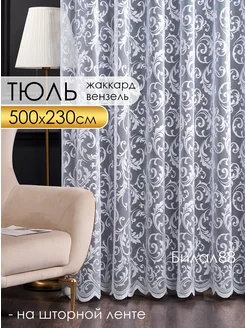 Тюль 500х230 жаккардовый готовый на ленте с узором