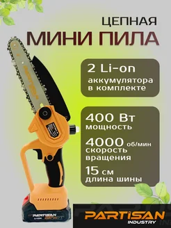 Пила аккумуляторная цепная мини, 2 акб, шина 15 см