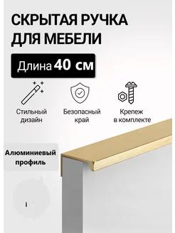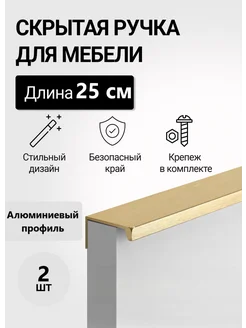 Скрытая накладная ручка для мебели алюминий 25см золотая 2шт