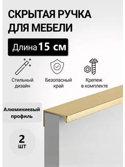Скрытая накладная ручка для мебели алюминий 15см золотая 2шт