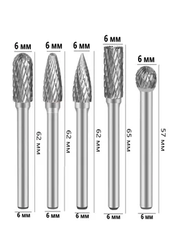 Набор борфрез из карбида вольфрама 5 шт Фрезы для металла