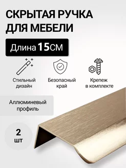 Скрытая накладная ручка для мебели алюминий 20см золотая 2шт