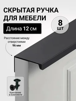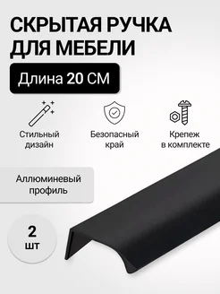 Ручка мебельная скрытая накладная 12 см черная алюминиевая