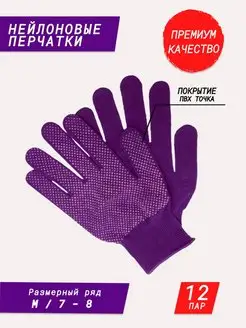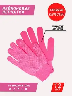 Нейлоновые перчатки садовые с ПВХ микроточкой 12 пар