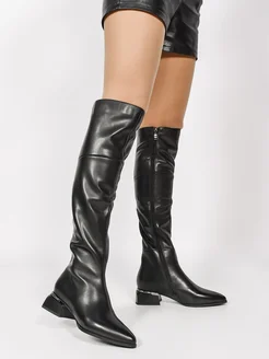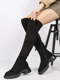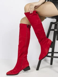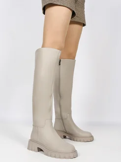 Ботфорты демисезонные высокие на каблуке натуральная кожа