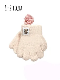 Перчатки плюшевые на веревочке для девочки 1-2 года