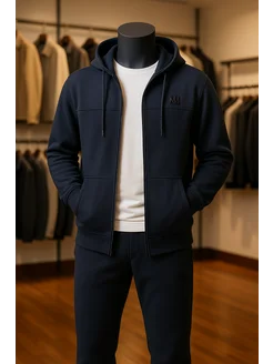 Костюм спортивный с капюшоном демисезонный на флисе теплый