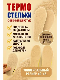 Термоортопедические стельки 40–46 с овечьей шерстью — тёплые