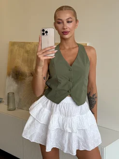 Юбка шорты мини кружевная с воланами летняя