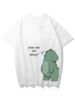 Парные футболки оверсайз с принтом динозаврики Обними меня 1