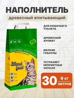 Наполнитель древесный для туалета кошек мелкие гранулы 30 л