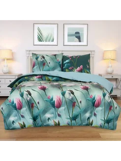 Постельное белье 2 сп (европростынь) поплин Сакура