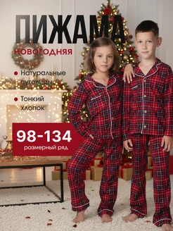 Новогодняя детская пижама со штанами и рубашкой в клетку