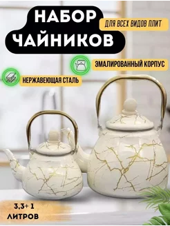 Набор Чайник для плиты эмалированный мраморный 1л и 3.3л