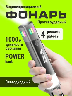 Мощный ручной фонарь аккумуляторный светодиодный Powerbank