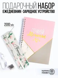 Подарочный набор ежедневник и повербанк 2000 mAh