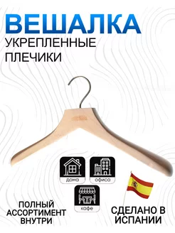 Вешалки-плечики для одежды деревянные с крючками,37см
